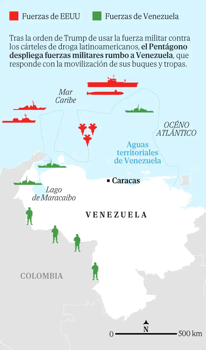 El presidente venezolano, Nicolás Maduro, ha reaccionado con incredulidad ante la intensificación de las operaciones militares estadounidenses. A finales de septiembre, Maduro declaró un «estado de conmoción externa», lo que le otorga mayores poderes en caso de una intervención militar. Esta declaración refleja la gravedad de la situación y la percepción de amenaza que siente el gobierno venezolano ante las acciones de Estados Unidos.